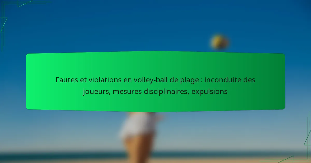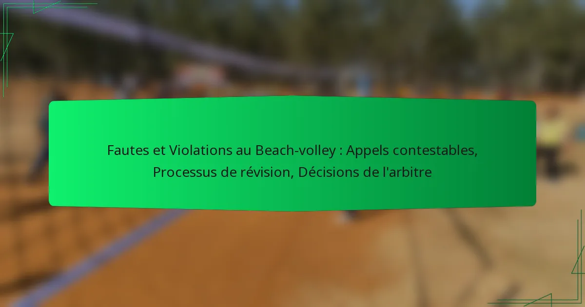 Le beach-volley est régi par un ensemble de fautes et de violations spécifiques qui peuvent grandement influencer l’issue du match. Comprendre ces infractions est essentiel tant pour les joueurs que pour les spectateurs, car elles peuvent entraîner des pénalités ou des déductions de points. Les équipes ont la possibilité de contester certaines décisions des arbitres, en particulier celles qui pourraient modifier le cours du jeu, et un processus de révision est en place pour garantir l’exactitude et l’équité de l’arbitrage.