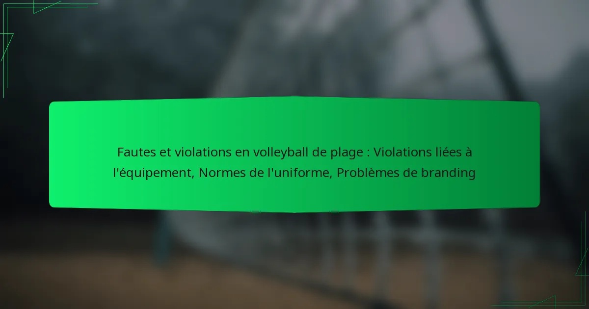 Le beach-volley comporte des fautes et des violations spécifiques qui peuvent impacter le déroulement et l’issue d’un match. Comprendre ces infractions est crucial tant pour les joueurs que pour les spectateurs, car elles peuvent entraîner des pénalités ou des pertes de points lors des compétitions.