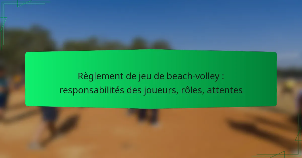 En beach-volley, chaque joueur a des rôles spécifiques qui contribuent à la performance globale de l’équipe. Comprendre ces rôles aide les joueurs à exécuter des stratégies efficacement et améliore le travail d’équipe sur le terrain.