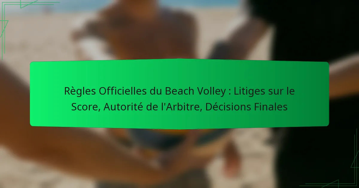 Les ressources officielles jouent un rôle crucial dans la clarification des règles du beach-volley, en particulier concernant les disputes de score, l’autorité des arbitres et les décisions finales. Ces ressources garantissent que les joueurs, entraîneurs et officiels ont accès à des informations cohérentes et précises, ce qui est essentiel pour un jeu équitable.